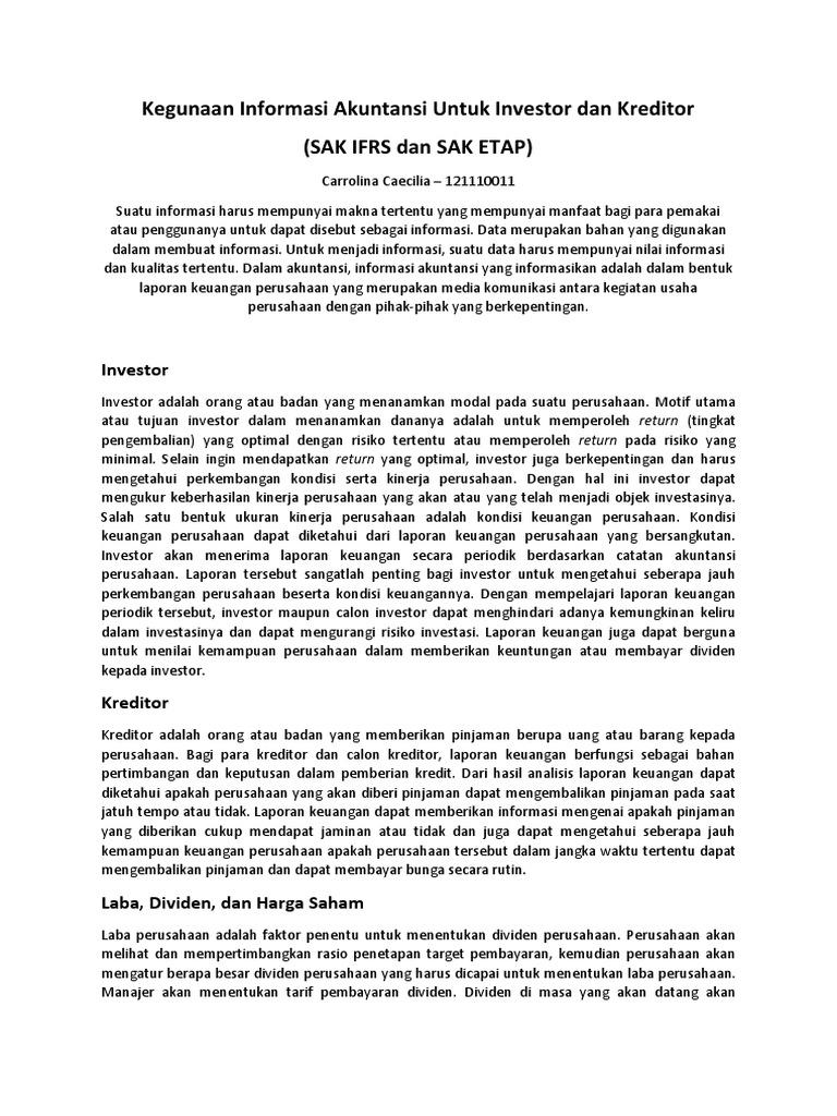Kegunaan Informasi Akuntansi Untuk Investor Dan Kreditor Pdf