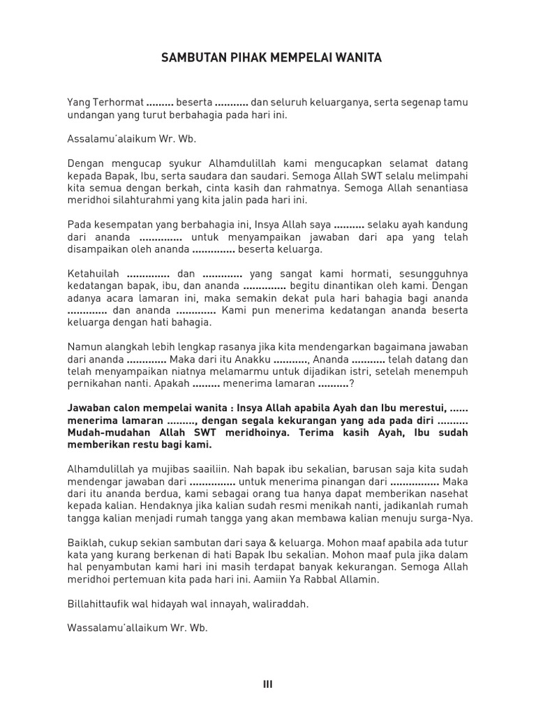 Sambutan Lamaran Pidato Keluarga Pria