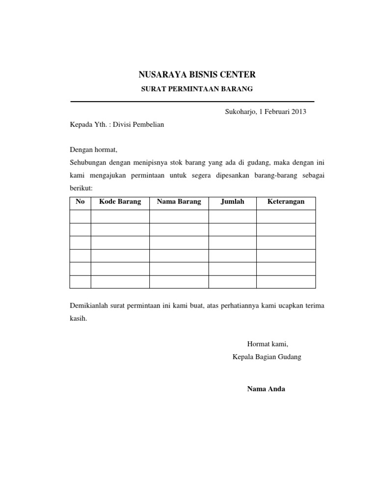 Tandai sebagai konten tidak pantas. Contoh surat permintaan barang. Contoh Surat Permintaan Barang Yang Benar have a graphic associated with the otherContoh Surat Permintaan Barang Yang Benar It also will include a picture of a kind that may be seen in the gallery of Contoh Surat Permintaan Barang Yang Benar.