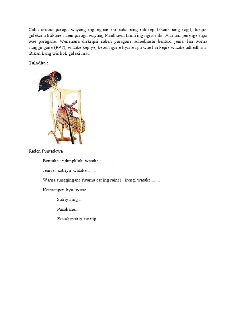 Wayang yang kita tahu merupakan warisan nenek moyang indonesia yang sangat berharga. Ing pedhalangan Drupadi dadi bojone Yudhistira. Diposting oleh Unknown di 0858.