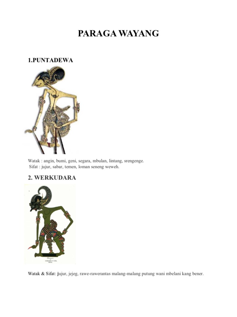 Tokoh Wayang Kulit Sifat dan Gambarnya. Jujur sabar ikhlas lan duwenipusaka Jumus Kalimasadab.