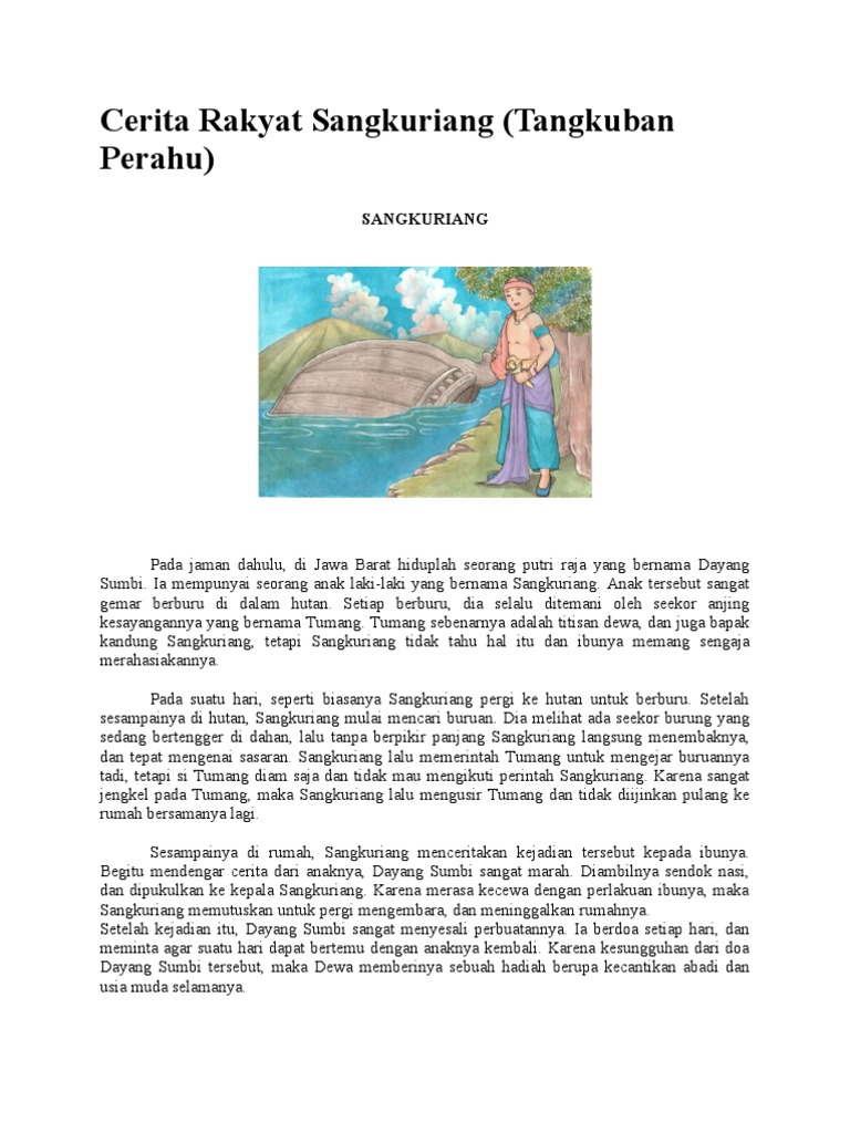 Cerita sangkuriang bahasa Inggris In a dense forest there lived a mother named Dayang Sumbi and her son named Sangkuriang they lived with a beloved dog named Tumang. Sesampainya di rumah ia memasak daging si Tumang dan makan bersama ibunya. Legenda Tangkuban Perahu Dongeng Cerita Sangkuriang dari Jawa Barat.
